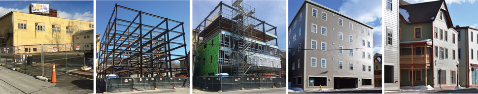 38 Columbus completes the phased construction of a 38-unit 55+ residential community located on the corner of Bank and Columbus Streets in the heart of the Seymour historic shopping district. Housing over 40,000sq.ft. of commercial and residential space, the project was developed in two phases to include the modernization and adaptive re-use of a blighted historic property and the phased urban infill construction over the site of an existing parking lot. Completed in 2008 and 2017 respectively, the project received wide regional support during the planning and development phases, partnering with local non-profit housing agencies to provide property management and support services for residents. The property now offers 4 ground floor retail spaces, handicapped accessible elevator lobbies, central outdoor courtyard, shared amenities space with state of the art building and safety systems, on-site management, limited on-site parking, and 38 one and two-bedroom apartments available to seniors 55+. Developed and designed by O’Riordan Migani Architects with the support of the State of Connecticut Department of Housing, Federal Home Loan Bank of Boston, Naugatuck Valley Savings & Loan, and Capital for Change in partnership with 16 Bank Street LLC and 38 Columbus LLC. For more information on the project, or to inquire about leasing and availability, please contact us at info@38columbus.com.